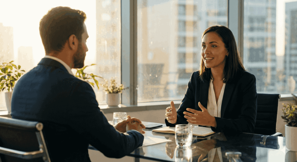 - Le Body Language : Une poignée de main ferme (si présentiel), un sourire franc, un regard soutenu. Votre énergie doit être communicative.